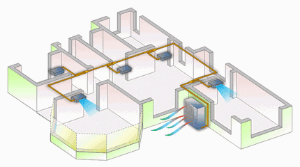 最初的中央新風系統運行原理是機械排出室內的污濁空氣,使室內形成負壓,利用壓差使新鮮的空氣源源不斷的被送入室內,與我國1998年引進的第一臺新風系統一模一樣,即所謂的單向流新風系統。