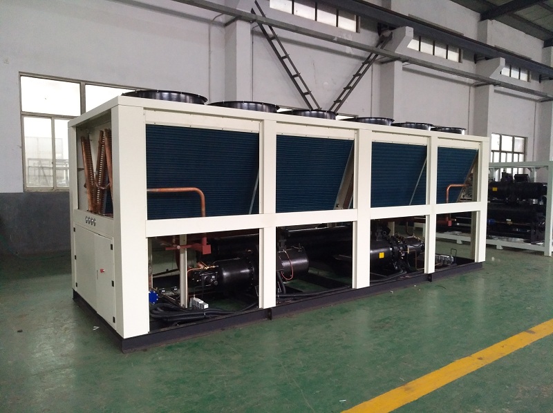 工業冷水機分類在制冷方式上可分為兩大類:風冷式冷水機和水冷式冷水機,兩者最大的區別就是冷卻方式不同,在結構上,他們的冷凝器也不同,分別為殼管式和翅片式。水冷式冷水機必須依靠冷卻水塔工作,風冷式的則用自身自帶的風扇進行冷卻,對環境有所要求:例如通風,濕度,溫度不能高40°C,空氣酸堿值等等。在技術上,水冷比風冷能效比要高出300500kcal/h;在價格上,水冷要比風冷低得多。
