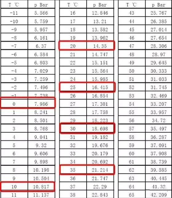 在制冷劑冷凝過程中,如果冷凝壓力一定,冷凝溫度也是一定的。它們之間的關(guān)系是一一對(duì)應(yīng)的。R410A為例,它們的關(guān)系是: