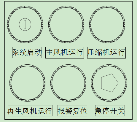 圖 6 12K 轉(zhuǎn)輪除濕機(jī)系統(tǒng)運(yùn)行開(kāi)關(guān)按鈕
