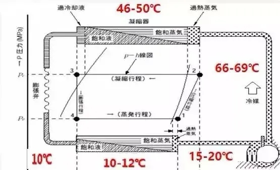 很多同行都沒有聽過“排氣過熱度”概念,“排氣過熱度”:壓縮機(jī)的排氣管(或者冷凝器進(jìn)口溫度)與冷凝壓力對應(yīng)的飽和溫度之差。