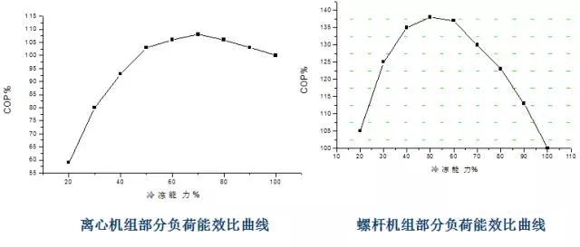 離心機組 :廠家的1000-19XR7070555EKS機組為例,機組滿負荷COP5.58。機組在75%50%25%負荷下COP分別為5.975.743.87