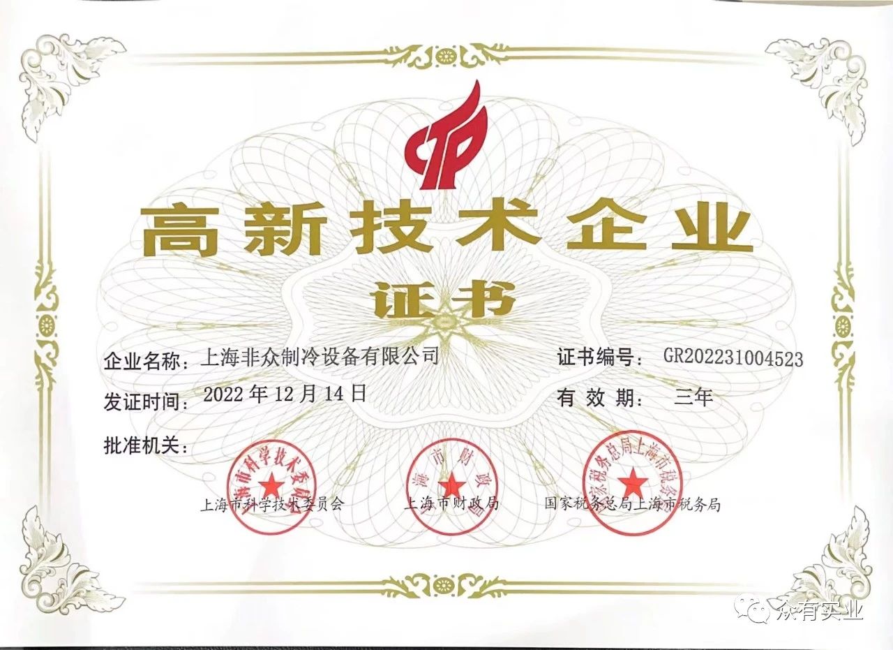 恭賀非眾制冷榮獲高新技術企業認證!