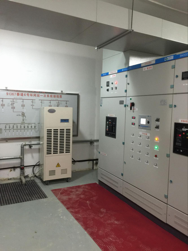 配電室是企業的供電心臟,雖然其結構形式簡單,但建造時多預埋件和孔洞,防滲漏等級要求高,且內部布有多種高壓電氣設備,在使用過程中,一旦發生雨季滲漏,將嚴重威脅供電安全。配電室多為單層砌體結構或磚混結構,雖然其結構形式簡單,但由于配電室功能的特殊性,在房屋防滲漏方面,提出了較高的要求。房屋滲漏主要有屋頂滲漏、外墻滲漏和門窗洞口滲漏等形式。高壓電氣設備對濕度非常敏感,房屋如果在雨季發生滲漏,會降低室內高壓電氣設備的絕緣性能,甚至由于滲漏嚴重出現滴水現象,造成電氣設備短路,導致跳閘事故。 由此可見,配電室防潮工作也很重要,若是配電室內的空氣濕度過高,過于潮濕的空氣勢必會對配電室的電子電氣類設備產生很大的負面影響。輕者可能會導致設備內部線路短路,經常出現開關跳閘等問題,重則可能會使配電系統癱瘓,配電室的安全與否,直接影響整個供電系統是否能正常的運行;因此,在配電室使用除濕機對濕度的控制是非常有必要的。