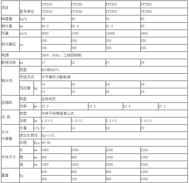 水冷調溫、降溫型常規除濕機技術指標<1>
