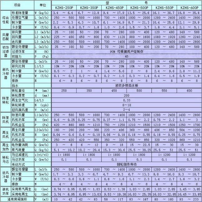 KZHS-□TP玻璃合片室型轉輪除濕機組技術參數